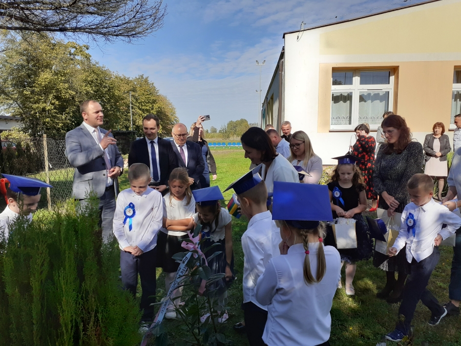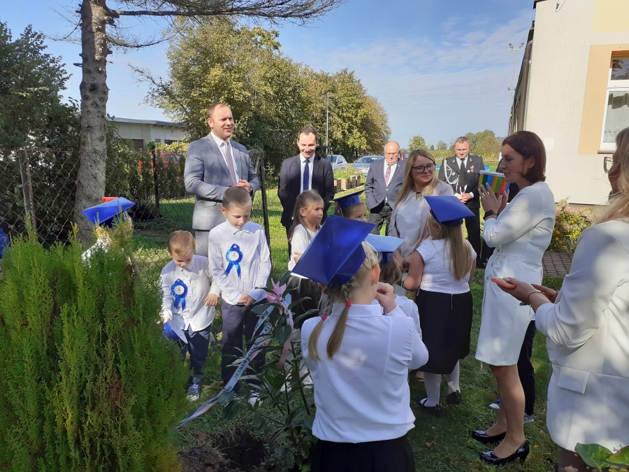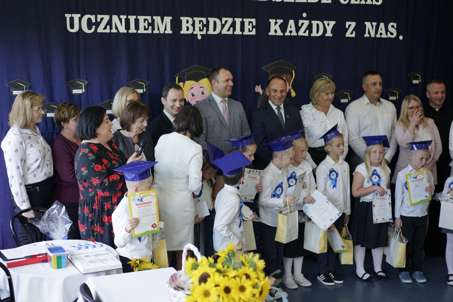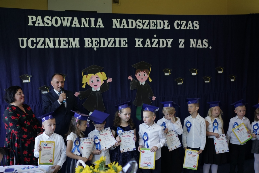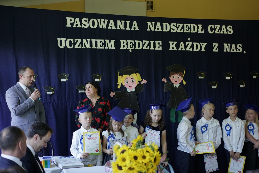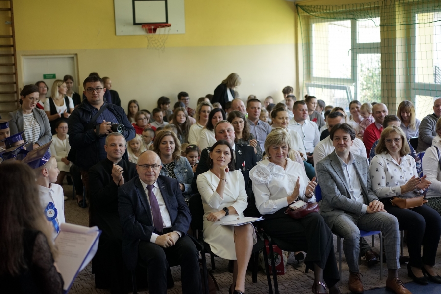 W tym wielkim dniu naszym uczniom towarzyszyli oczywiście rodzice oraz społeczność szkolna. Po brawurowo wykonanym programie artystycznym, rozpoczętym nostalgicznym Polonezem i wypełnieniu przygotowanych przez starszych kolegów  zadań z zakresu znajomości naszej ojczyzny, zasad bezpieczeństwa i podstaw matematyki, odbyło się ślubowanie pierwszoklasistów oraz ich rodziców. Uroczystego pasowania na uczniów  PSP im. BCh w Ursynowie dokonali wspólnie  Wicewojewoda  Mazowiecki  Patryk Fajdek oraz Dyrektor Marzena Rusinek.  Po wspólnie wykonanych zdjęciach i wręczeniu prezentów  zaproszeni goście wraz z uczniami  dokonali  tradycyjnego już w tej placówce wkopania drzewka  z symboliczna kapsułą czasu. Relację z wydarzenia ukazały się m.in.: na stronach FB szkoły, Stowarzyszenia , na stronie  Kozienice 24 oraz w Kronice Kozienickiej.