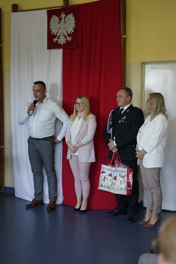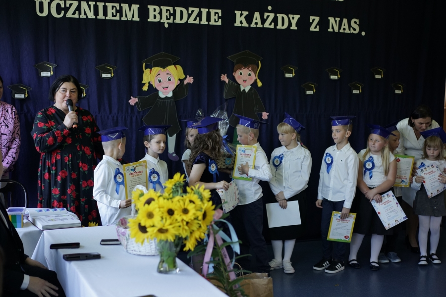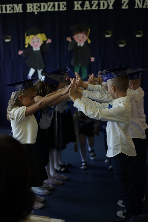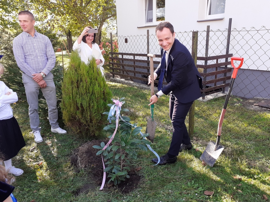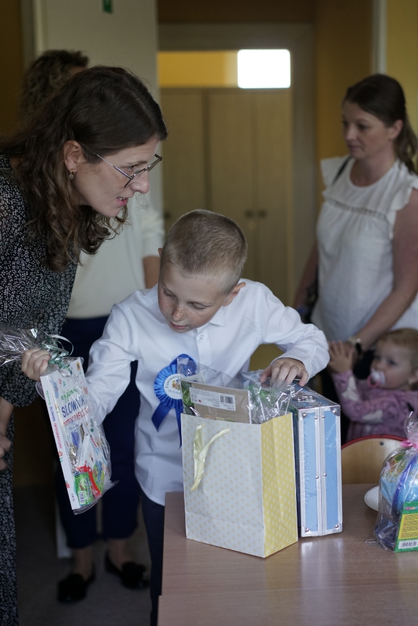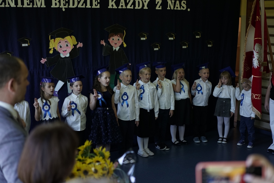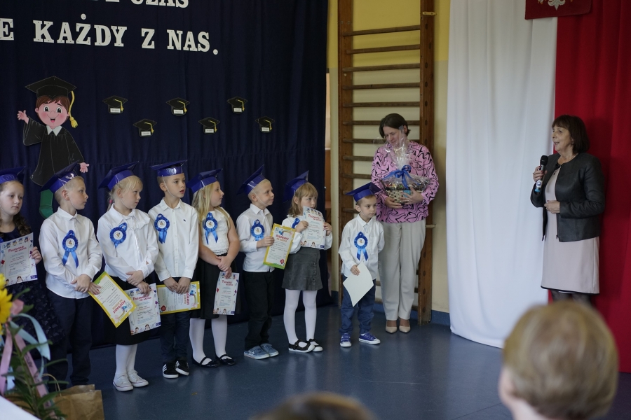 W tym wielkim dniu naszym uczniom towarzyszyli oczywiście rodzice oraz społeczność szkolna. Po brawurowo wykonanym programie artystycznym, rozpoczętym nostalgicznym Polonezem i wypełnieniu przygotowanych przez starszych kolegów  zadań z zakresu znajomości naszej ojczyzny, zasad bezpieczeństwa i podstaw matematyki, odbyło się ślubowanie pierwszoklasistów oraz ich rodziców. Uroczystego pasowania na uczniów  PSP im. BCh w Ursynowie dokonali wspólnie  Wicewojewoda  Mazowiecki  Patryk Fajdek oraz Dyrektor Marzena Rusinek.  Po wspólnie wykonanych zdjęciach i wręczeniu prezentów  zaproszeni goście wraz z uczniami  dokonali  tradycyjnego już w tej placówce wkopania drzewka  z symboliczna kapsułą czasu. Relację z wydarzenia ukazały się m.in.: na stronach FB szkoły, Stowarzyszenia , na stronie  Kozienice 24 oraz w Kronice Kozienickiej.